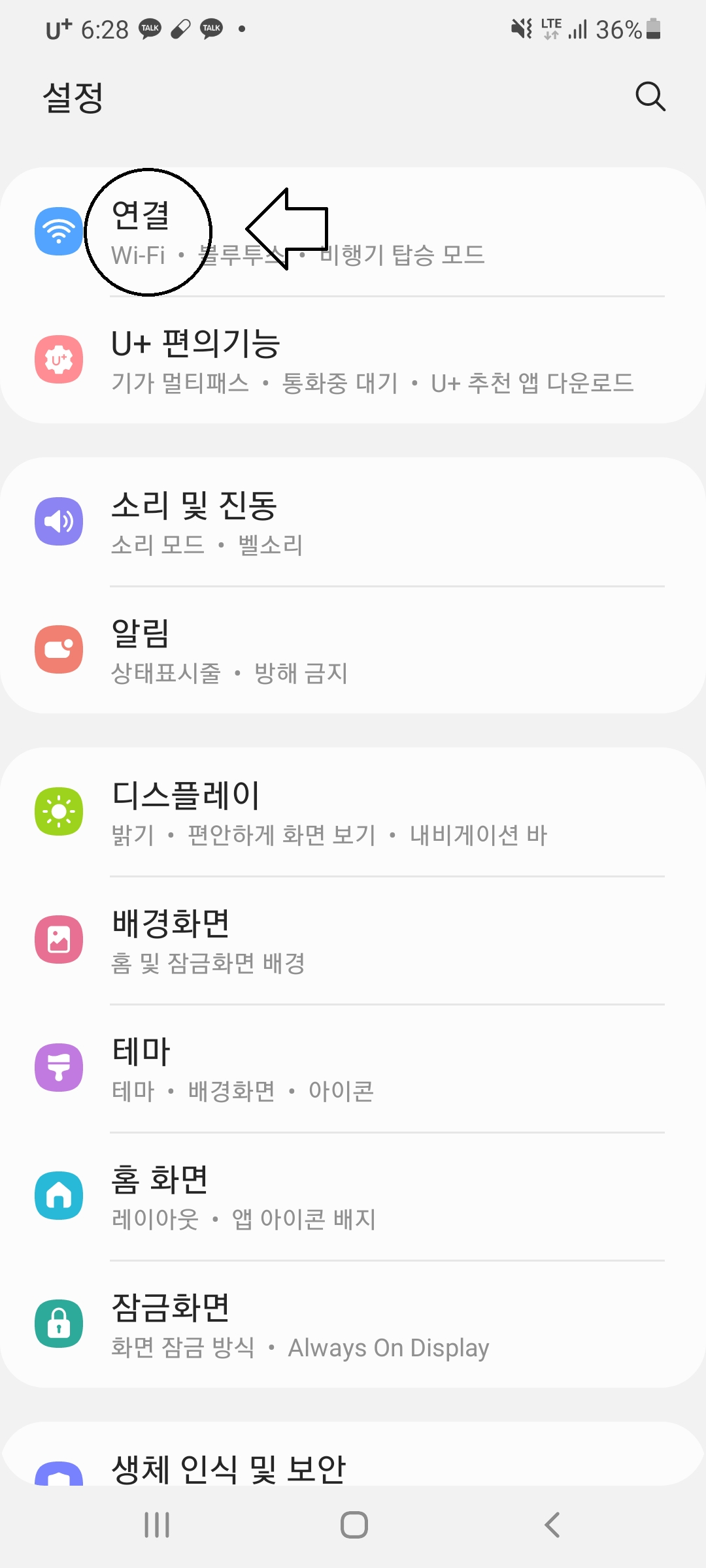 핸드폰 설정에서 연결을 눌러줍니다.